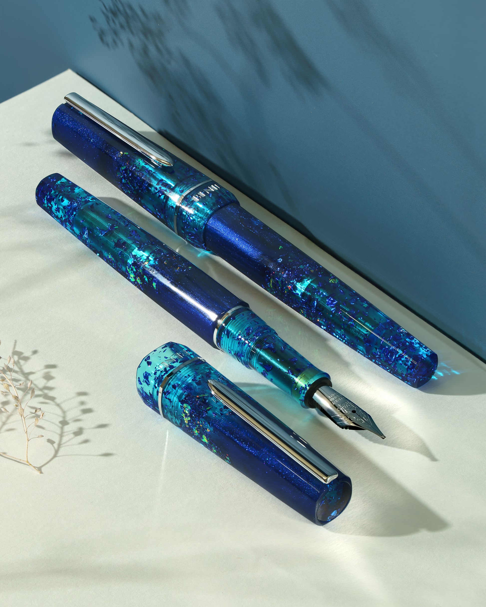 Haute Collection - a line of elegant, fashion-inspired pens that blend classic charm with bold, modern flair. The designs include both subtle and vibrant styles, showcasing BENU's signature glitter and colour artistry. Each pen features a faceted body with alternating wide and slender facets, complemented by either gold-plated or chrome-plated trims for a sleek, timeless look.