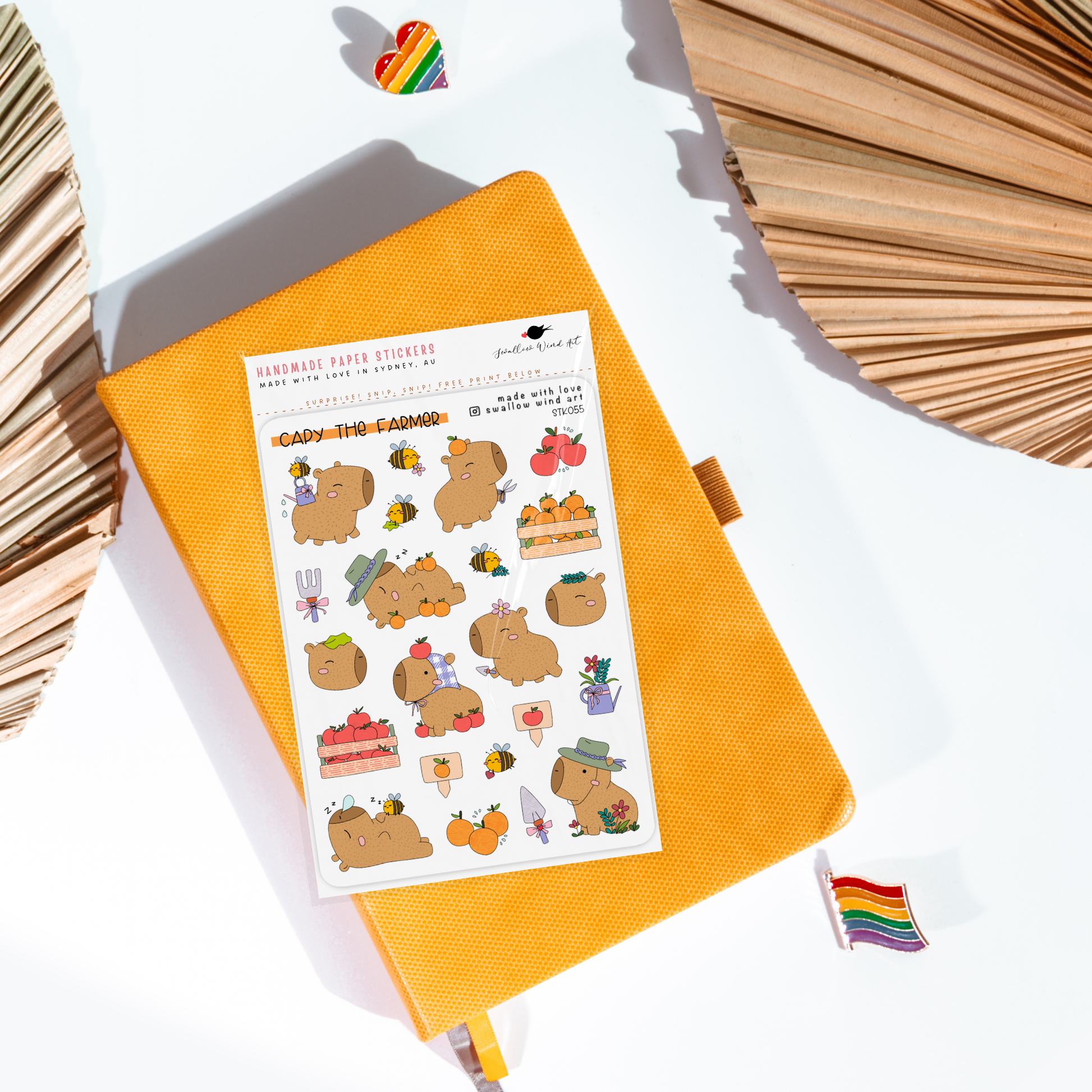 Meet Capy the Farmer - our cute capybara is best friends with sleepy bee and they like to hang out and chill together.