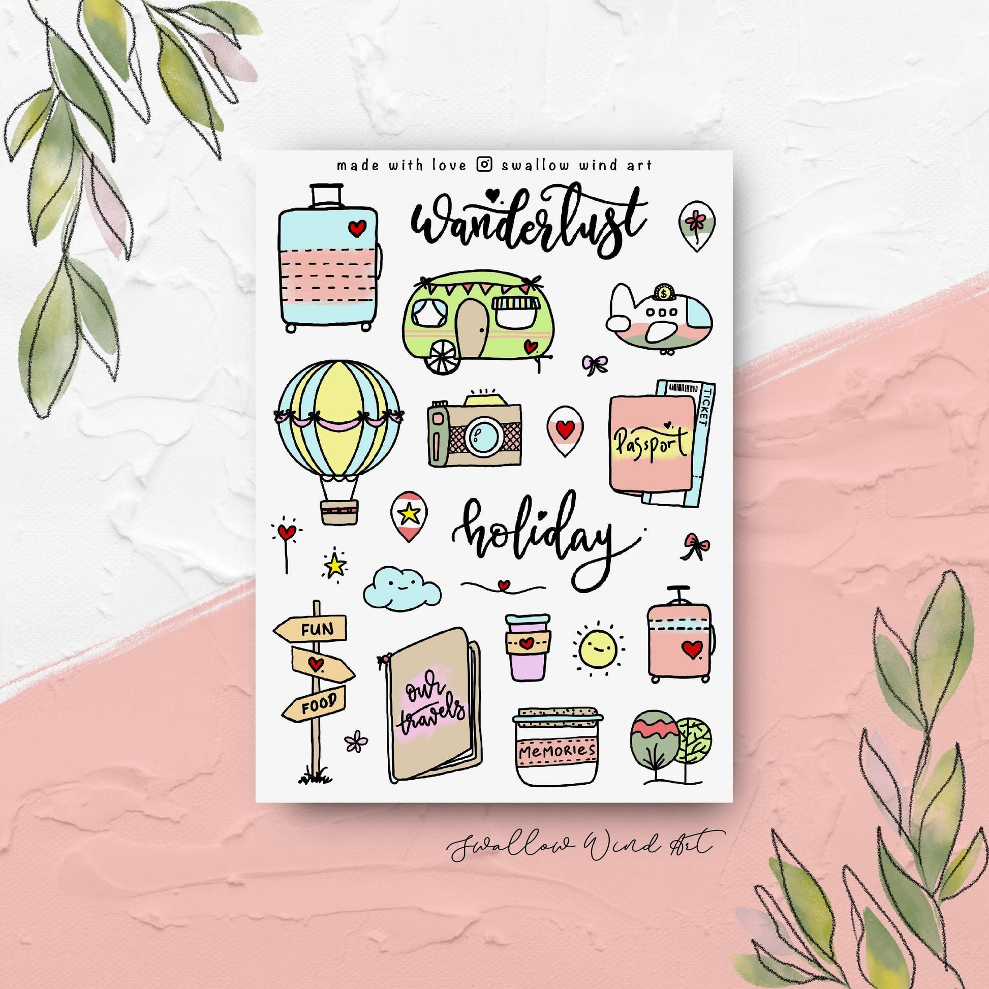 A collection of cute illustrated stickers for your journal when you are travelling!